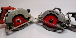 Circular Saws come in several varieties, the traditional style known, as a sidewinder in which the motor is located on the left side, is lightweight and compact. A left-handed version which is opposite of this type is also available not only for left-handed people. Many people find this version easier to operate and to see the cut line. A Worm Drive is another type of Circular Saw. This model has the motor on top instead of the side and is much heavier it also has considerably more power.  This model is more common on the west coast and was invented and used for framing houses during the 1950’s housing boom in California and has remained very popular by professionals.